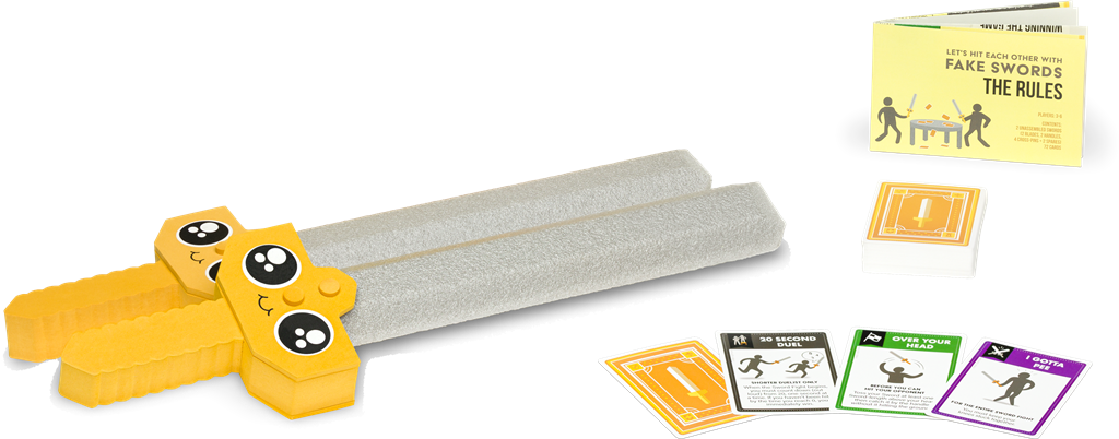 "Let's hit each other with fake swords" is een zwaardvecht-kaartspel van de makers van Exploding Kittens en Throw Throw Burrito.
