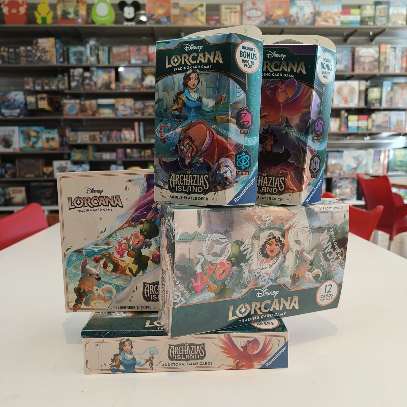 Het is al weer een tijdje geleden dat Ravensburger de TCG Disney Lorcana ter wereld bracht. Een kaartspel voor jong en oud waar je samenwerkt met bekende Disney figuren om een zo mooi mogelijk verhaal te vertellen (ook wel bekend als je tegenstander compleet onder de tafel te vegen met ultieme kennis van elk stukje Disney Lorcana karton). Nu is het al weer tijd voor de zevende set van Disney Lorcana: Archazia’s Island. Het nieuwste hoofdstuk brengt ons voor het eerst kaarten met twee kleuren inkt, personages van De Aristocats, Bolt en Lady en de Vagebond zijn nu speelbaar en er is natuurlijk een nieuwe prerelease waar jij aan mee kan doen! Voor tickets, data en tijden, check hier.
