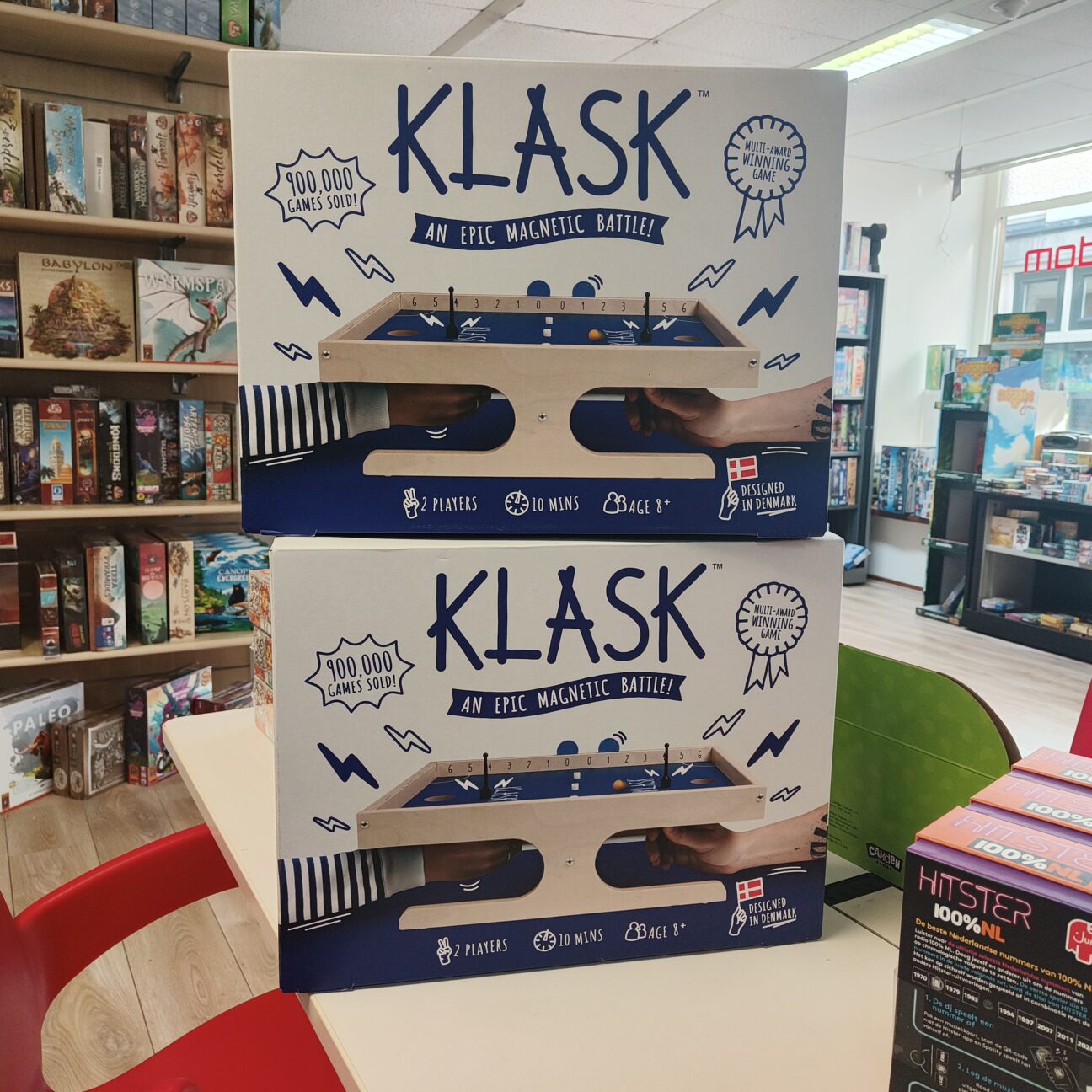 Misschien heb je de social media posts al voorbij zien komen, maar wij organiseren samen met Asmodee voorrondes van het NK Klask! Deze leuke events zijn voor iedereen toegankelijk en echt niet zo competitief al je denkt. Klask is namelijk een leuk nieuw party spel wat ons doet denken aan een sjoelen, tafelvoetbal of airhockey. Je gebruikt een magnetisch speelstuk om de bal in je tegenstanders goal te schieten, maar pas op! Er zijn namelijk meerdere magnetische obstakels aanwezig, die je het erg lastig kunnen maken. Zin om gewoon een leuk potje Klask te spelen en misschien zelfs een reis naar Helsinki te winnen? Schrijf je dan in.
