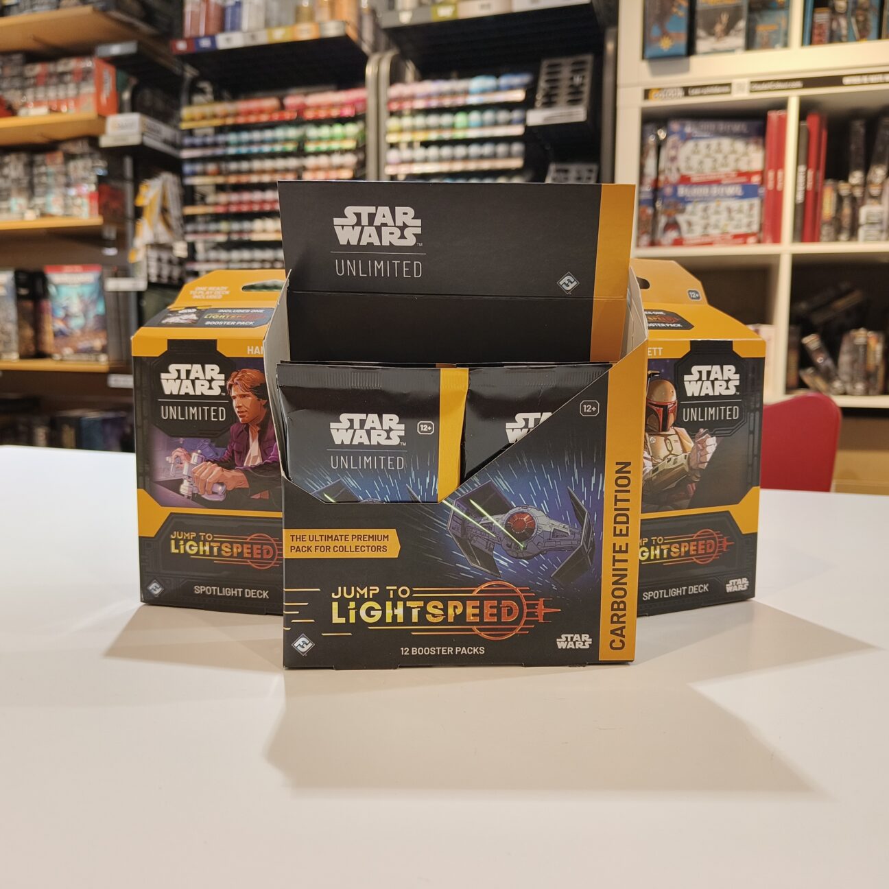 Niet alleen sterrenschepen, maar ook de tijd vliegt! Star Wars Unlimited is al een jaar oud, en start zijn tweede levensjaar met de nieuwe set Jump to Lightspeed. Na een jaar lang gefocust te hebben op ground combat, gooit de game het naar eigen zeggen helemaal om met deze nieuwe set kaarten. In Jump to Lightspeed draait alles namelijk om de strijd in de ruimte. Verwacht een grote dosis starfighters en andere bekende ruimteschepen uit de Star Wars serie, inclusief hun piloten. Ook brengt Jump to Lightspeed ons Carbonite Boosters, waar je de mooiste en meest valuable kaarten in kan vinden. Vlieg naar de winkel, zou ik zeggen!