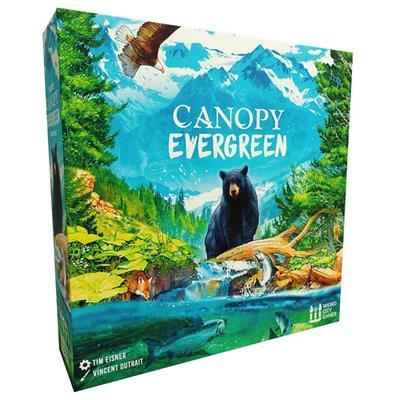 Ja, het is weer een natuur gerelateerd bordspel, maar kijk dan! Wat is dit een prachtig plaatje. Gelukkig is Canopy: Evergreen ook nog eens een onwijs leuke bordgame. Je kiest elk seizoen dieren die je punten of bonussen opleveren, draft kaarten om de natuur te laten gedeijen, en zorgt dat jouw prachtige bos in het noord-westen van Amerika in balans blijft. Het draft systeem is erg interessant. Er zijn namelijk drie verschillende stapels, en je kiest telkens of je de stapel zelf wil spelen. Wil je dat niet, voeg je er een kaart aan toe. Wat neem je zelf, en wat laat je achter? Veel kaarten, veel keuzes, veel strategieën; dat is Canopy Evergreen.